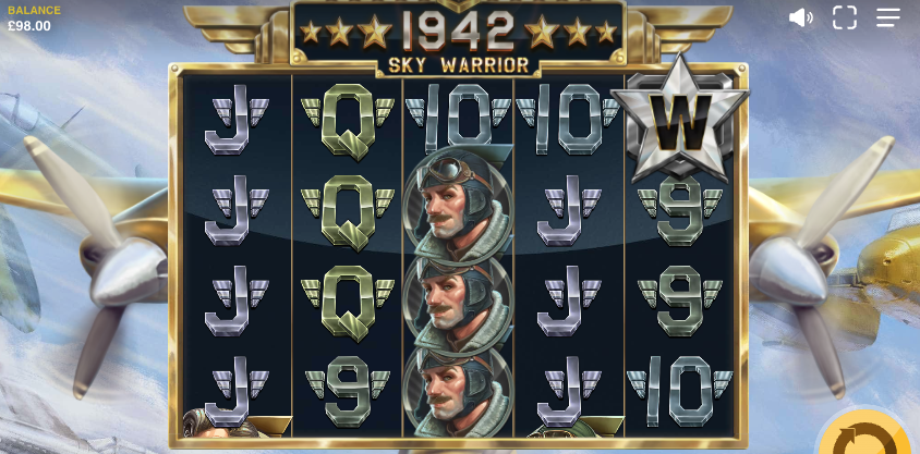 Take to the skies in 1942 Sky Warrior, an action-packed World War II-themed slot from Red Tiger. This high-volatility game features 5 reels, immersive aerial combat visuals, and exciting bonus features. Players can potentially trigger Free Spins with multiplier wilds and symbol upgrades. With its dynamic design, crisp sound effects, and engaging gameplay, 1942 Sky Warrior delivers a thrilling experience that will make you feel like an actual fighter pilot on a winning mission.